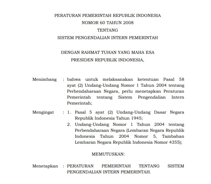 Peraturan Pemerintah Republik Indonesia Nomor 60 Tahun 2008 Tentang Sistem Pengendalian Intern Pemerintah