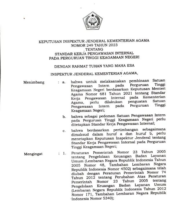 Berdasarkan Keputusan Inspektur Jenderal Kementerian Agama Nomor 249 Tahun 2023 Tentang Standar Kerja Pengawasan Internal bahwa reviu adalah penelaahan ulang terhadap isi dokumen berkaitan dengan rencana kegiatan, standar, dan norma yang telah ditetapkan